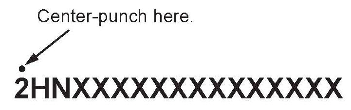 2. Center-punch a completion mark above the first character of the engine compartment VIN: