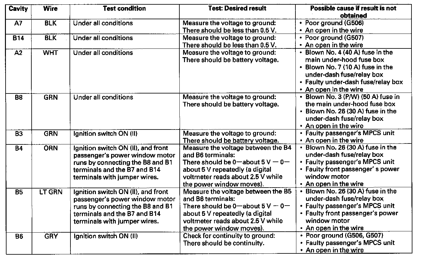 Passenger's MPCS Unit Input Test1. Turn the ignition switch OFF.