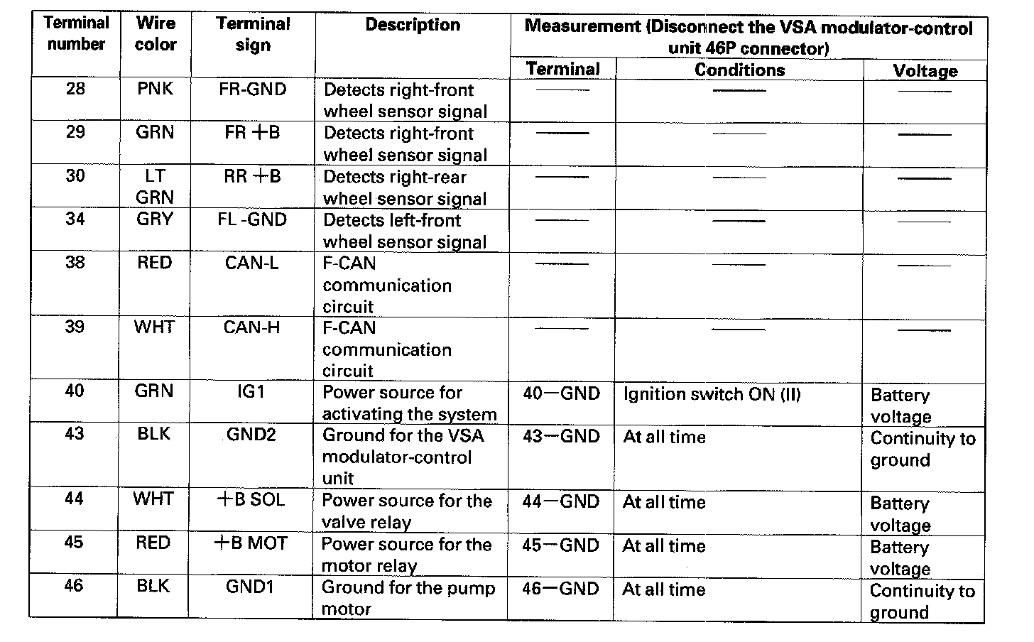 VSA Modulator-control Unit Inputs And Outputs For 46P Connector (Part 1):