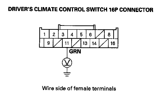 17. Measure the voltage between body ground and the driver's climate control switch 16P connector terminal No. 11.