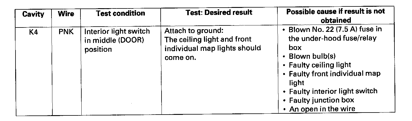 6. Reconnect the connectors to the under-dash fuse/relay box, and make these input tests at the connectors.