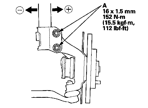 ^ The camber angle can be adjusted up to ± 25' (center of tolerance) by replacing one damper pinch bolt with the adjusting bolt.