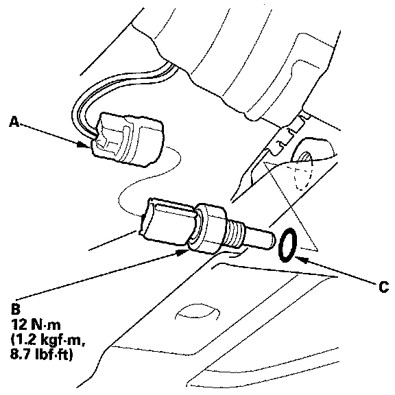 4. Install ECT sensor 2 with a new O-ring (C).