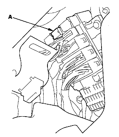 52. Remove the driver's dashboard undercover, then remove PGM-FI main relay 2 (FUEL PUMP) (A) from the under-dash fuse/relay box.
