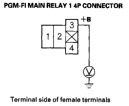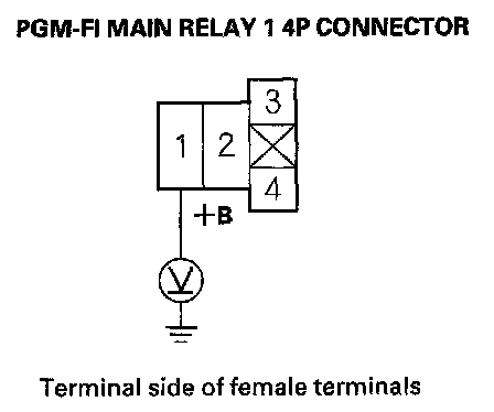 61. Measure voltage between PGM-FI main relay 1 4P connector terminal No. 3 and body ground.
