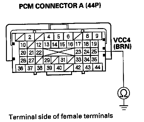 76. Check for continuity between PCM connector terminal A25 and body ground.