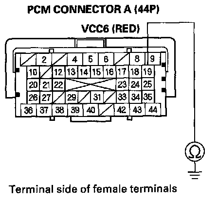58. Measure voltage between PCM connector terminal A6 and body ground.