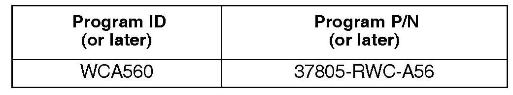 The updated PGM-FI software program ID and P/N are shown below. If the HDS or MVCI is loaded with the latest software, and it displays No Update Needed during the update, the software for this service bulletin is already installed.