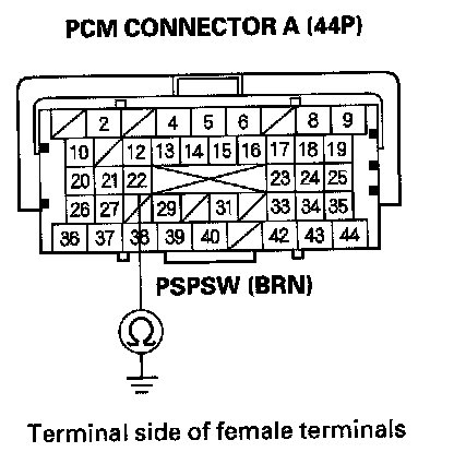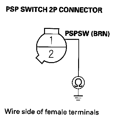 24. Check for continuity between PSP switch 2P connector terminal No. 2 and body ground.