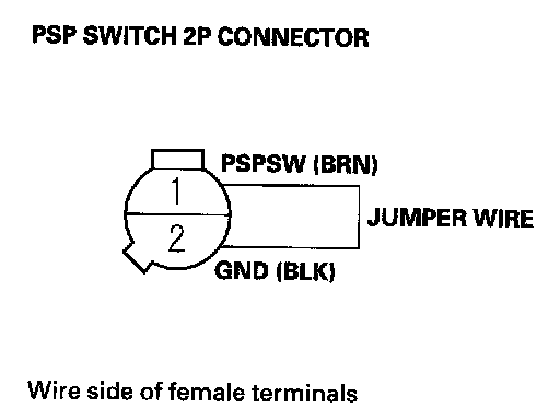 19. Remove the jumper wire from the PSP switch 2P connector.