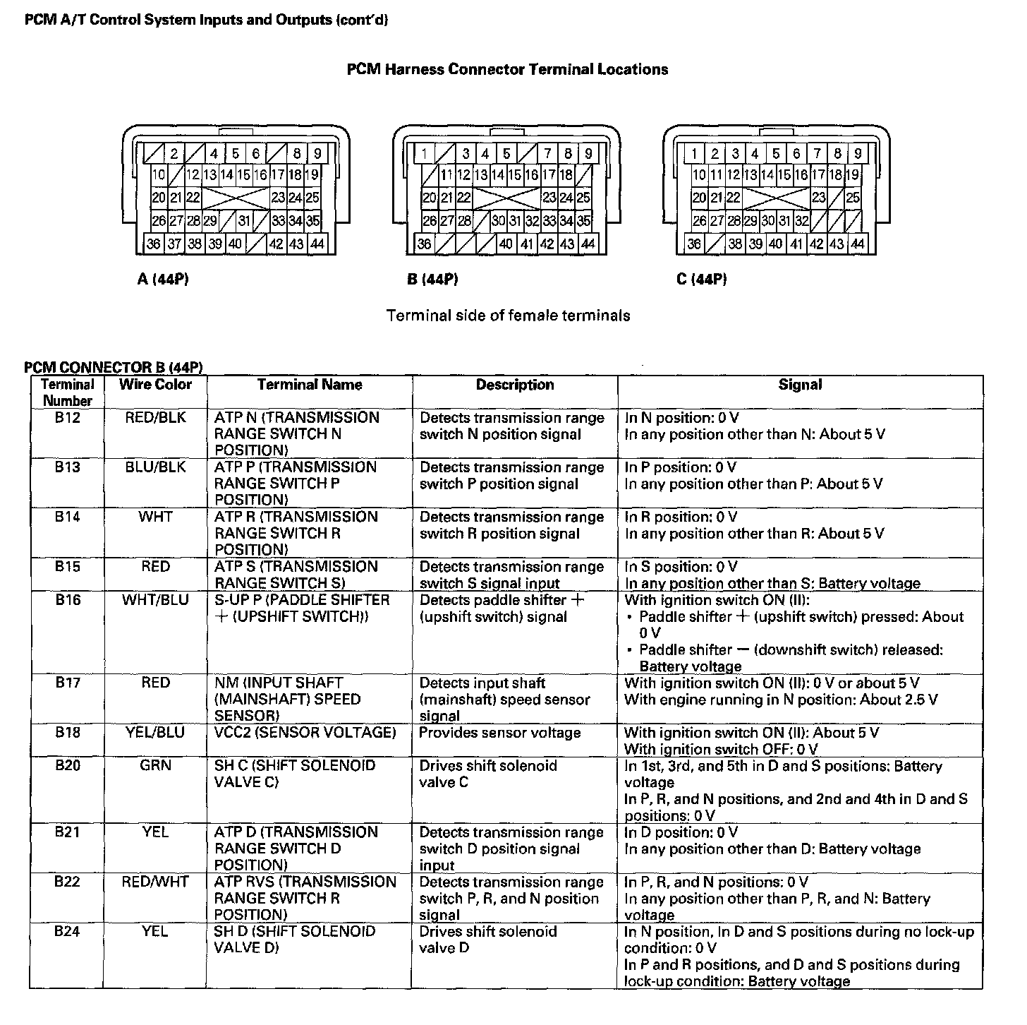 PCM A/T Control System Inputs And Outputs (Part 3):