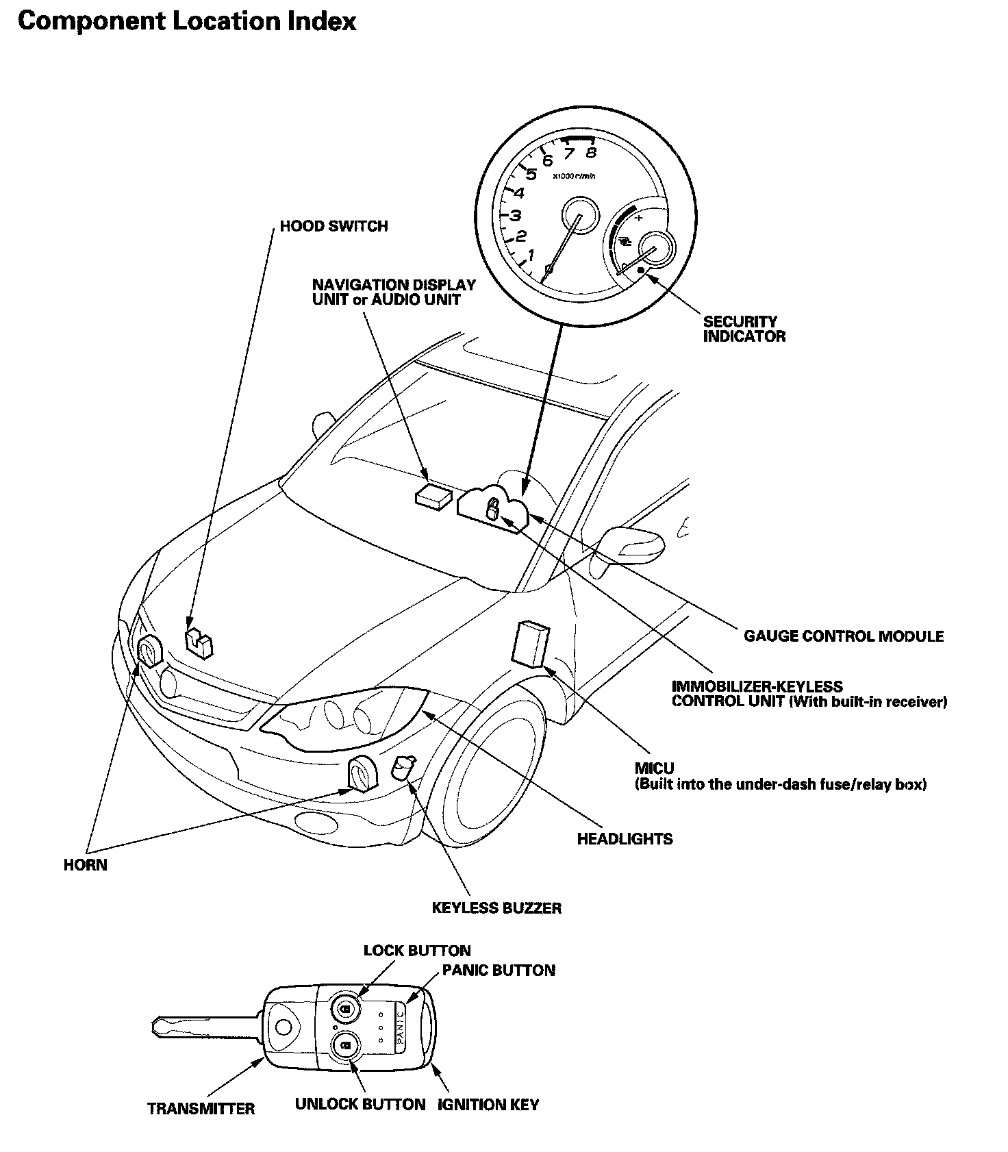 Keyless/Power Door Locks/Security System Component Location Index: