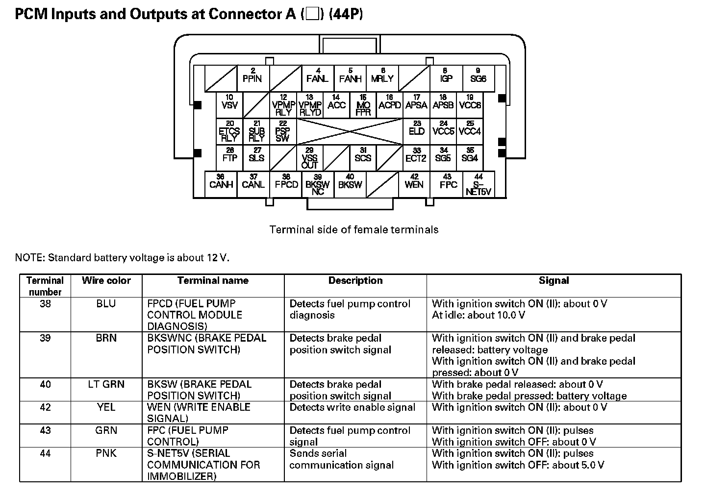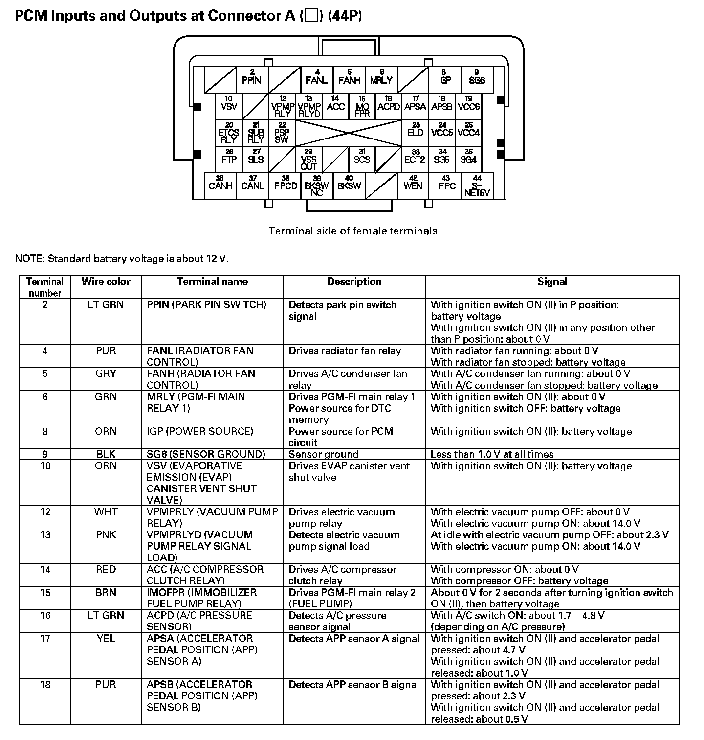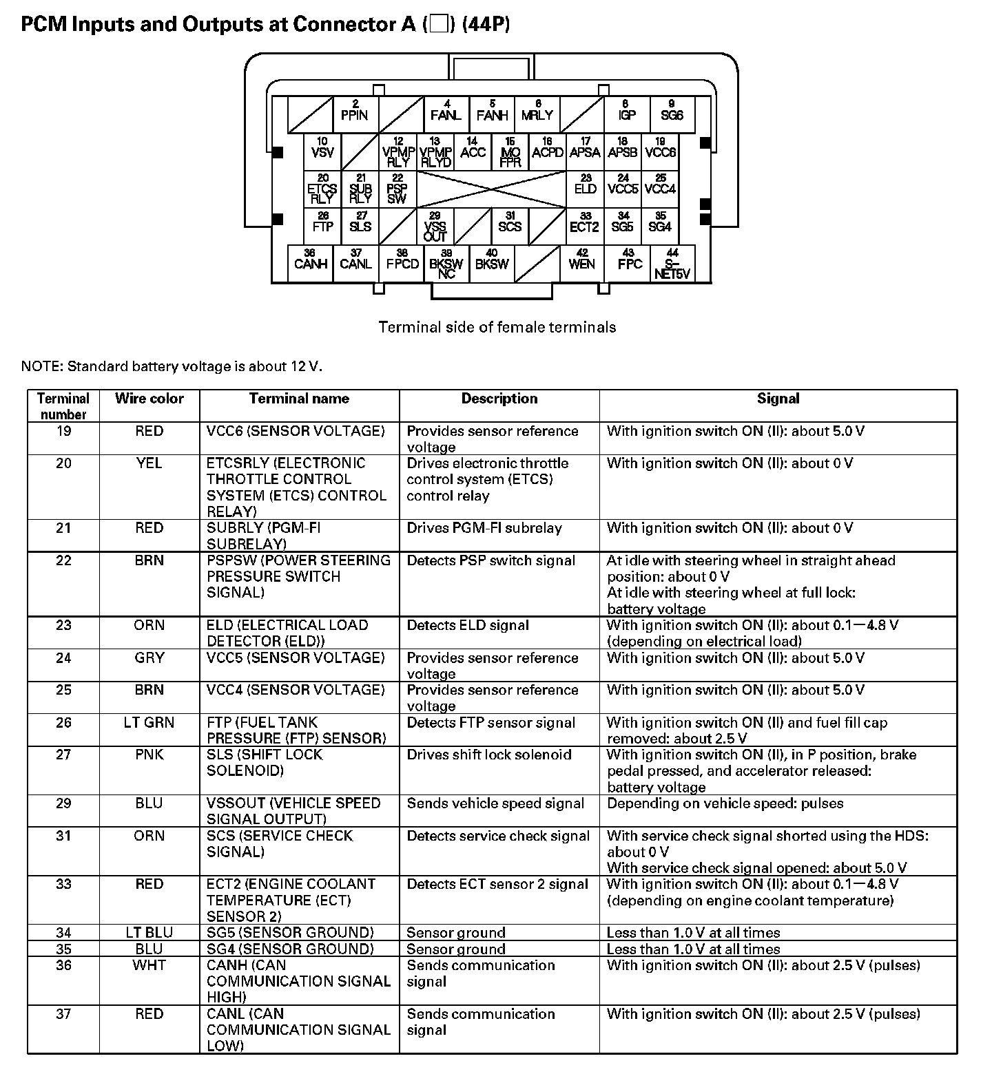 PCM Inputs And Outputs At Connector A (44P) (Part 1):
