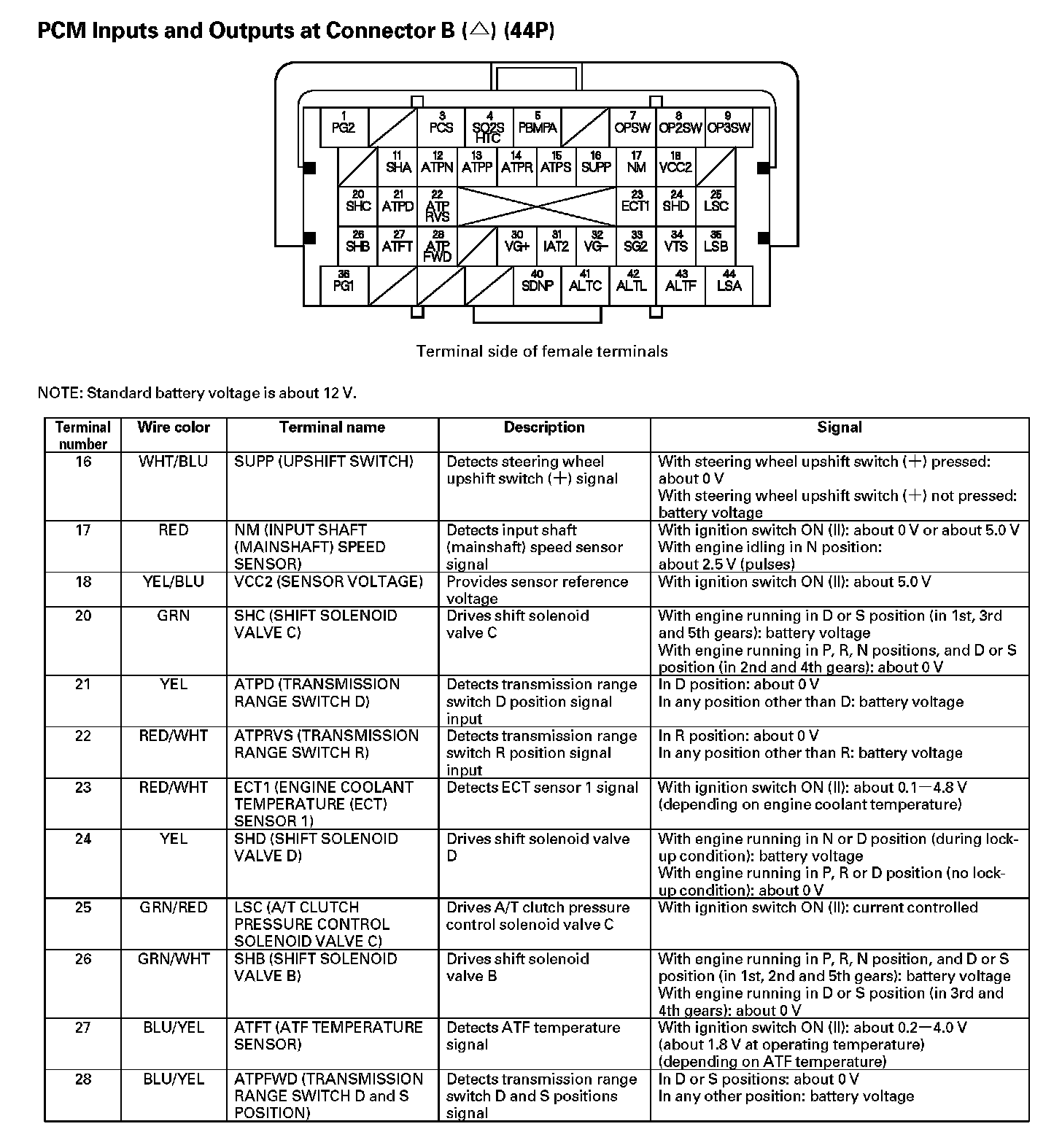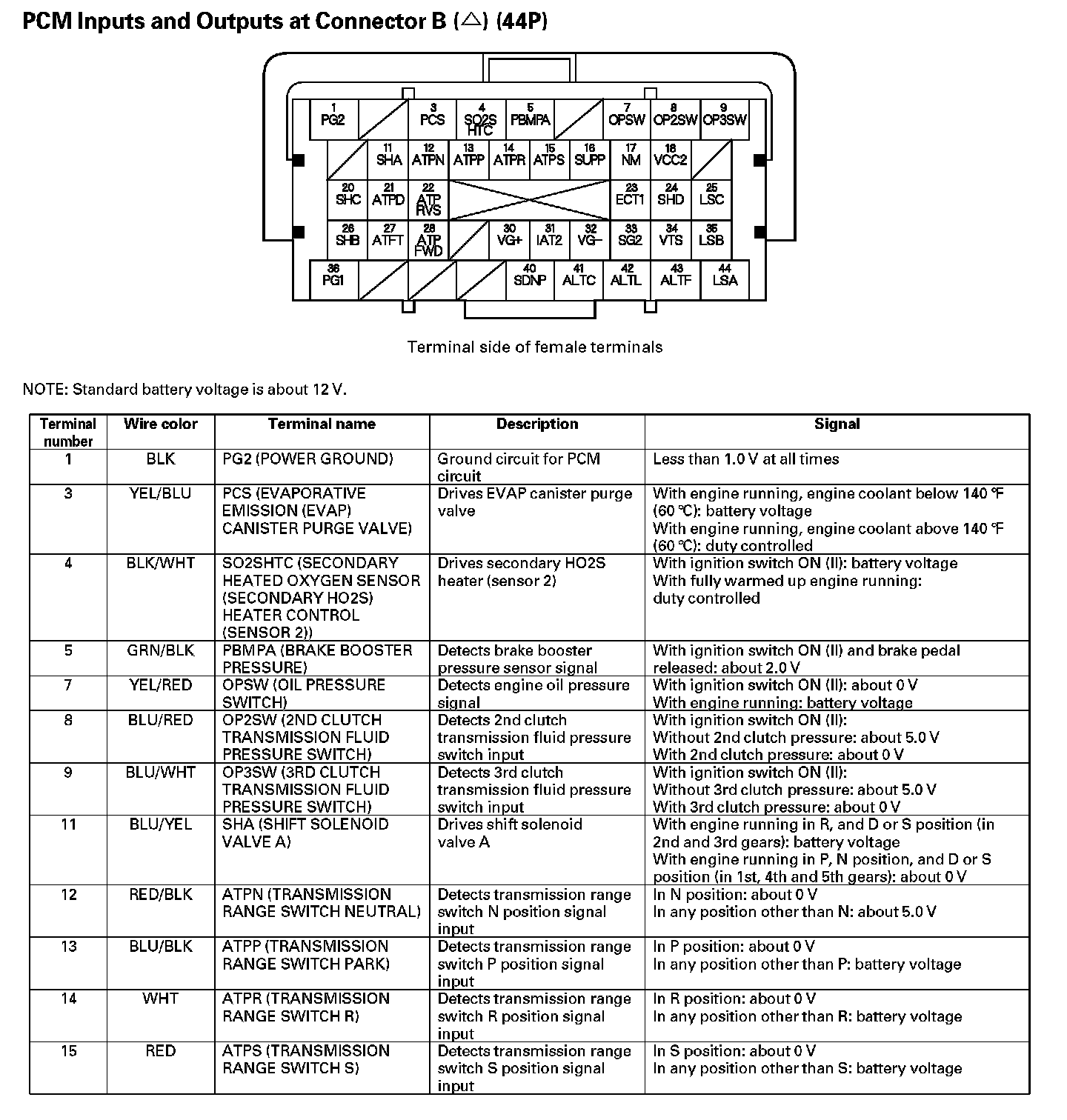 PCM Inputs And Outputs At Connector B (44P) (Part 1):