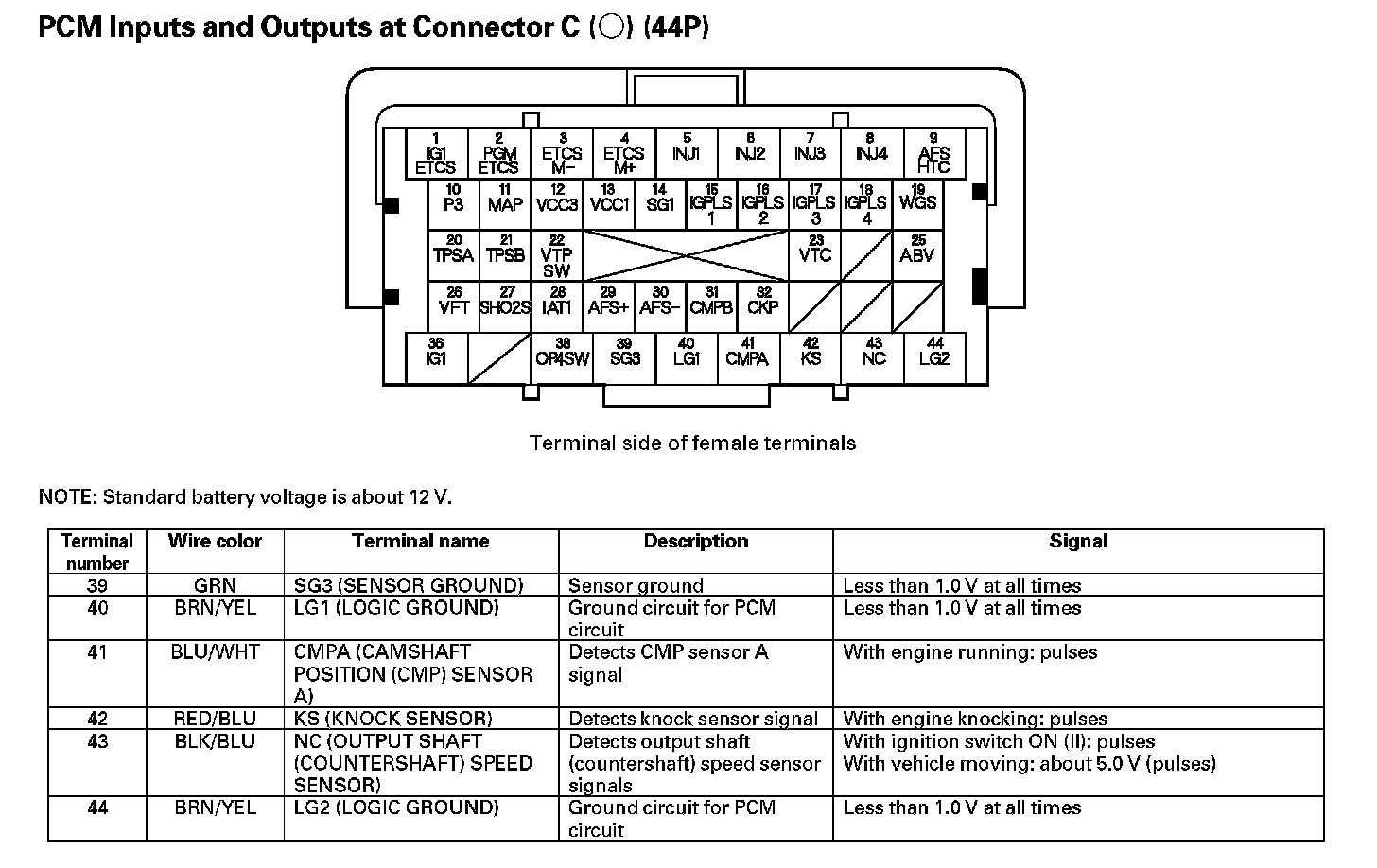 PCM Inputs And Outputs At Connector C (44P) (Part 1):