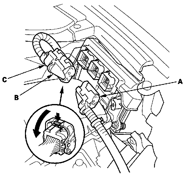 2. Disconnect the PCM connectors A, B, and C.