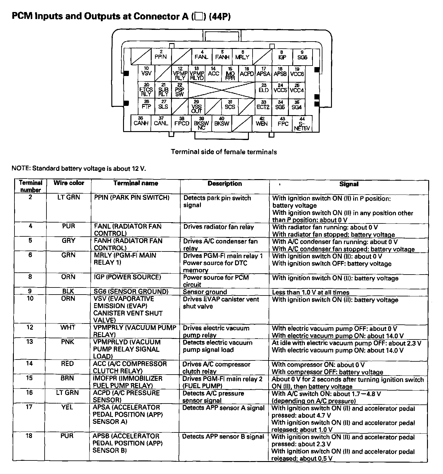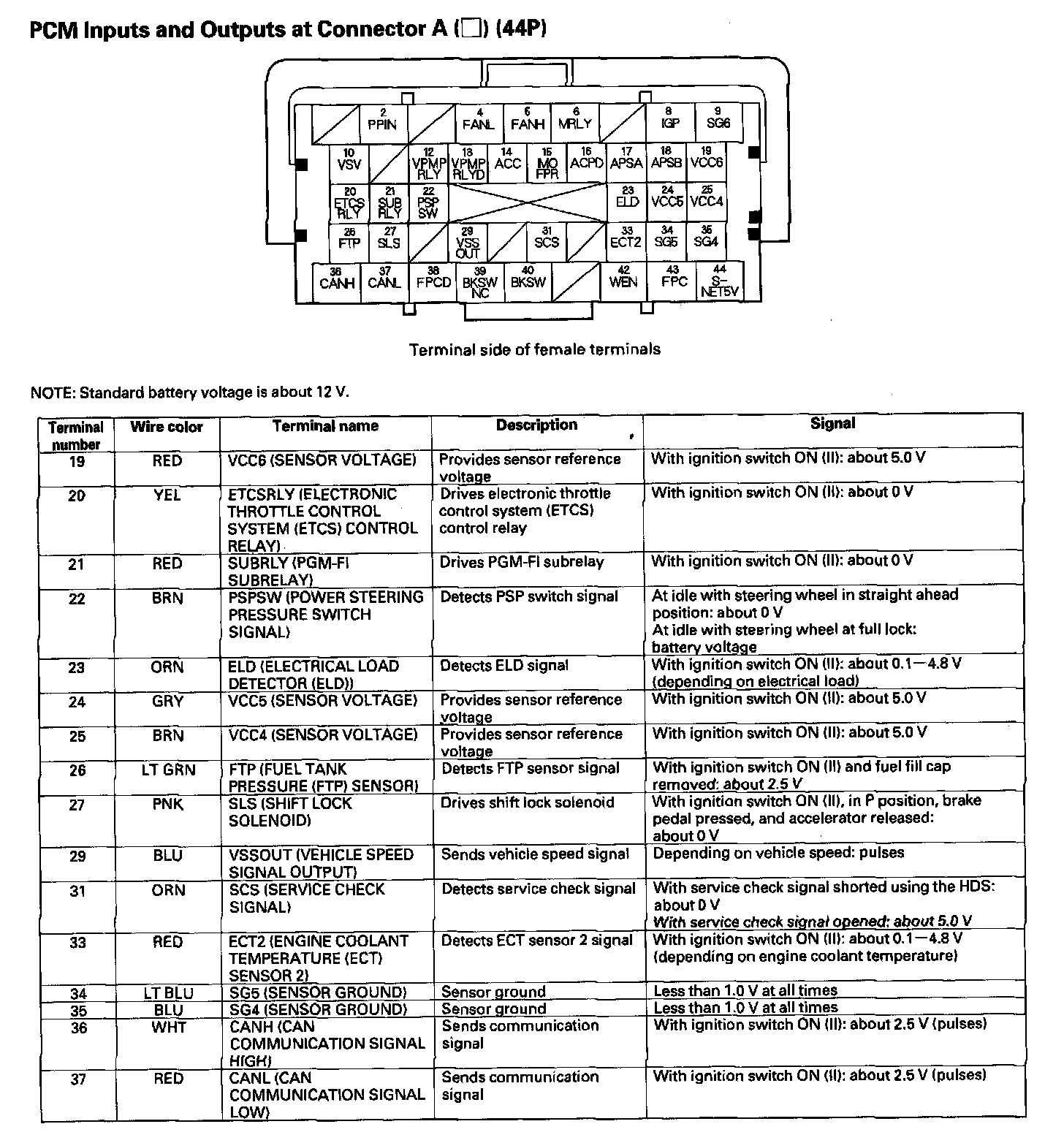 PCM Inputs And Outputs At Connector A (44P) Part 1: