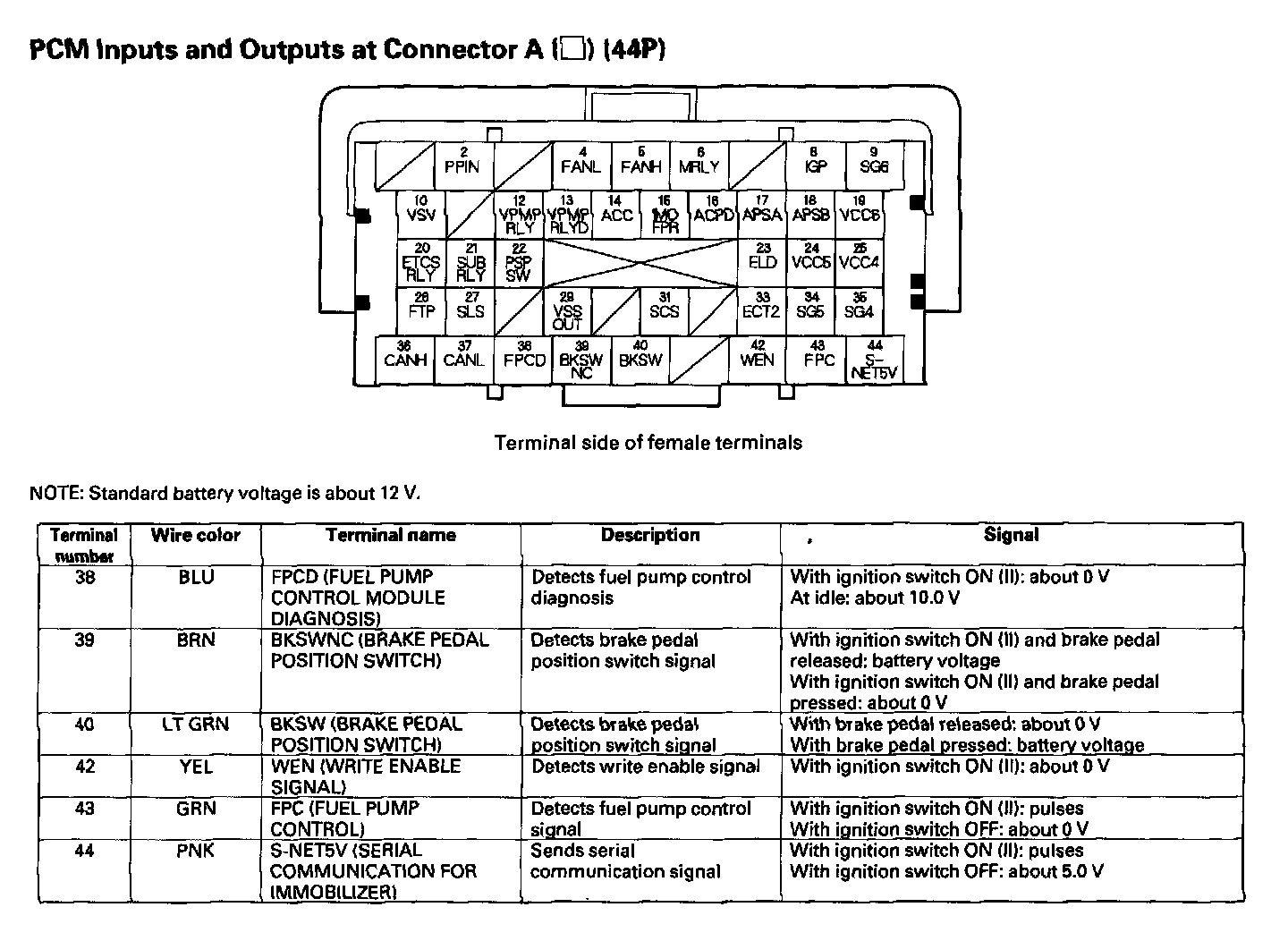 PCM Inputs And Outputs At Connector A (44P) Part 3: