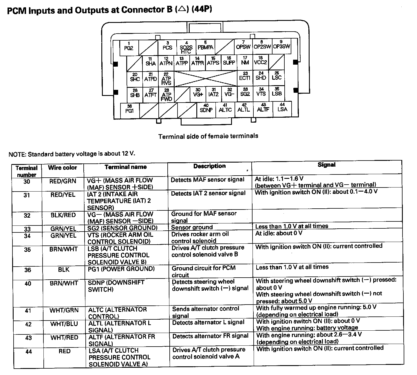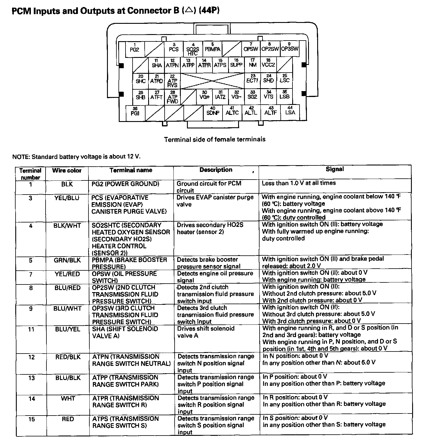 PCM Inputs And Outputs At Connector B (44P) Part 1:
