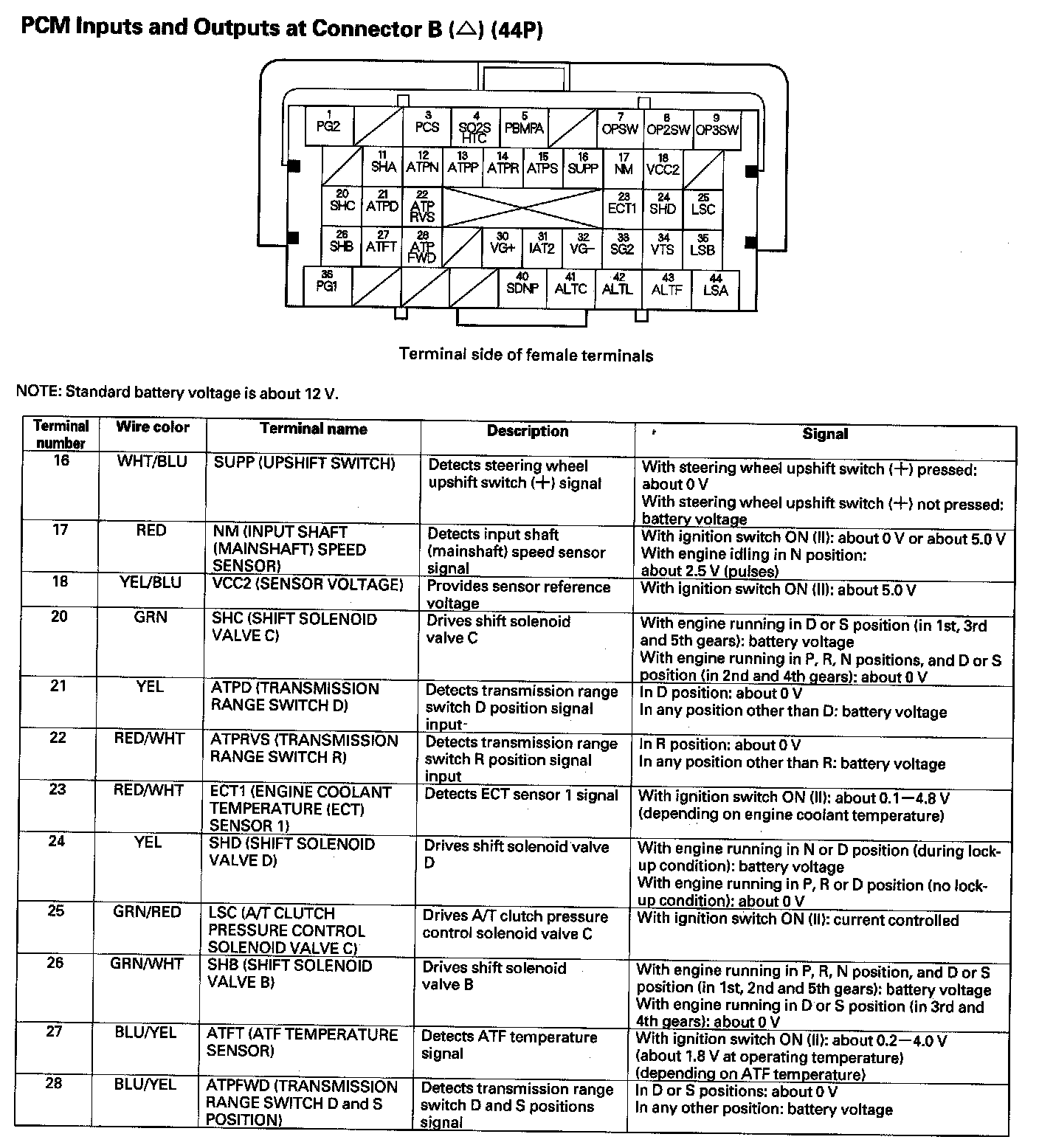 PCM Inputs And Outputs At Connector B (44P) Part 3: