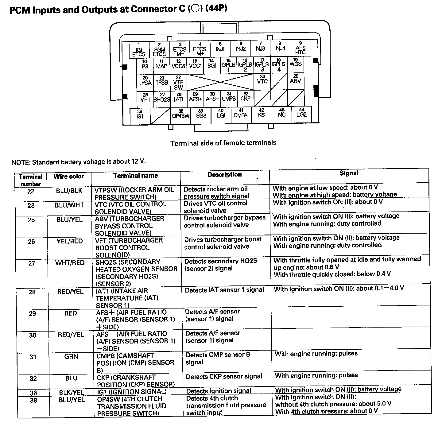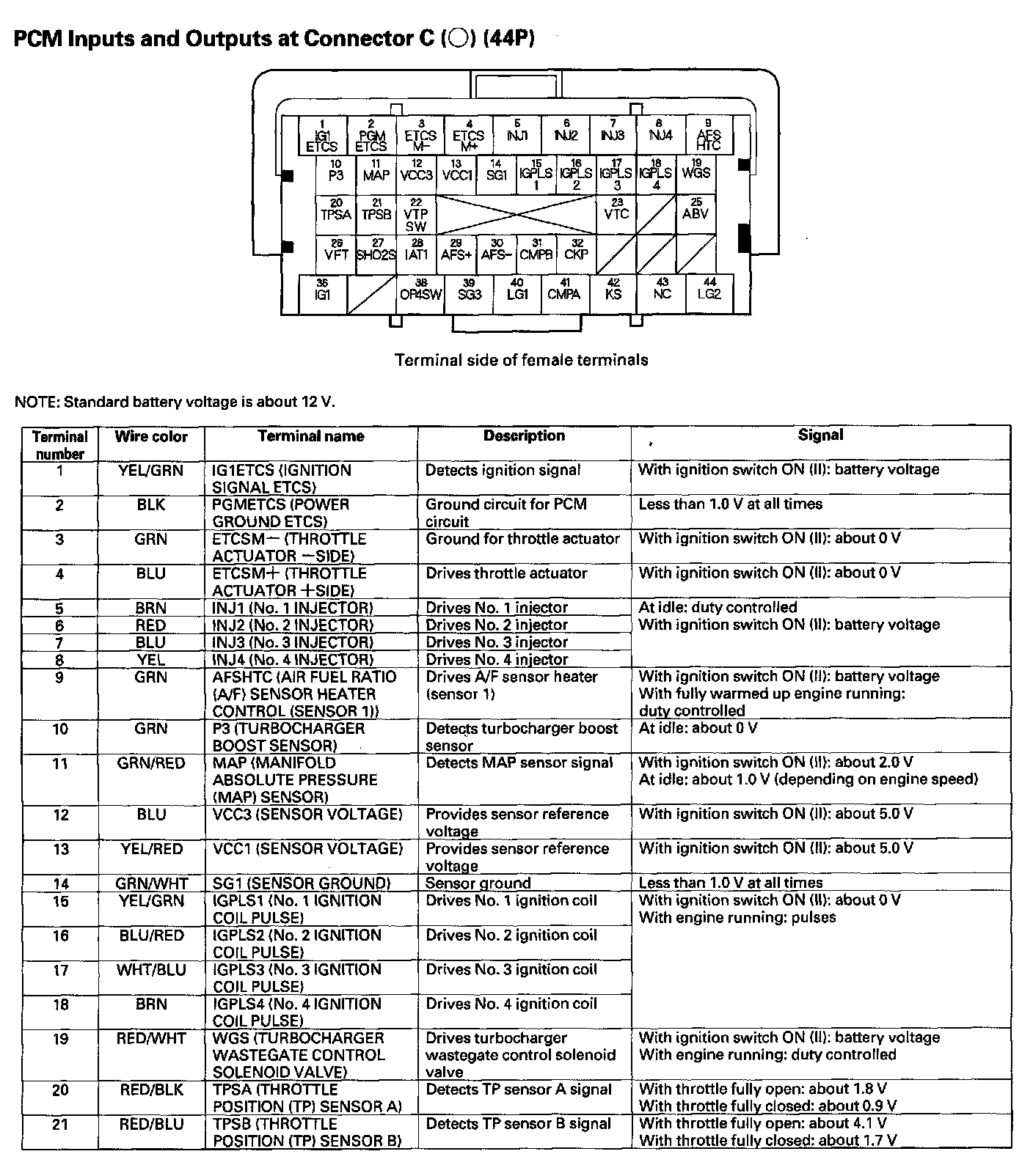 PCM Inputs And Outputs At Connector C (44P) Part 1: