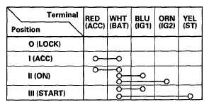 - If the continuity checks do not agree with the table, replace the ignition switch (see TEST ).