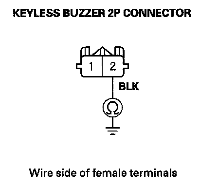 6. Check for continuity between keyless buzzer 2P connector terminal No. 2 and body ground.
