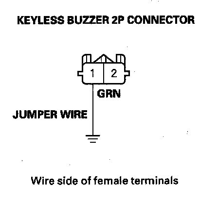 8. Connect keyless buzzer 2P connector terminal No. 1 to body ground with a jumper wire.
