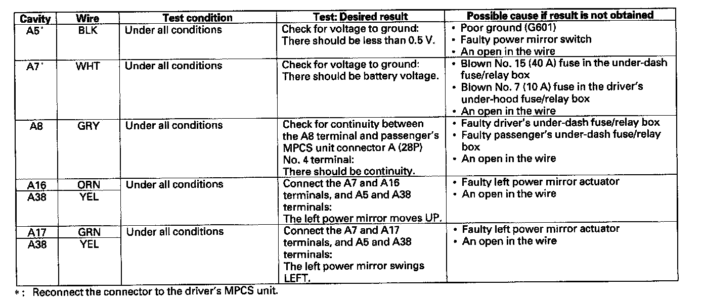 Power Mirror Circuit Input TestNOTE: Before testing, troubleshoot the multiplex integrated control system first using B-CAN System Diagnosis Test Mode A.