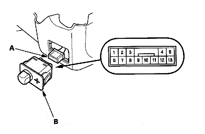 2. Disconnect the 13P connector (A) from the power tilt/telescopic steering switch (B).