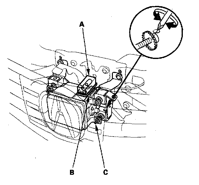 3. Turn the vertical adjusting bolt (C) on the driver's side with a screwdriver, and adjust the angle of millimeter wave radar unit so that the air bubble in the level is centered.