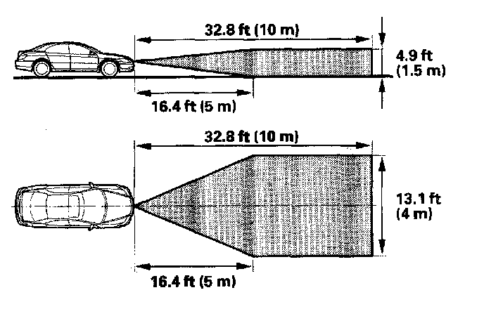 - Park the vehicle on level ground in a wide open space to avoid misadjusting caused by reflecting objects. The space needs to be 32.8 ft (10 m) in front, 13.1 ft (4 m) in width and 4.9 ft (1.5 m) in height.