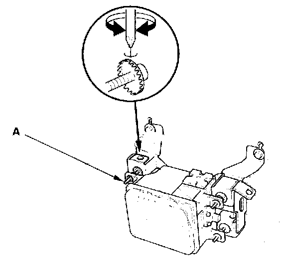 19. If the radar is not aligned in the range where the auto aiming works correctly, turn the horizontal adjusting bolt (A) and adjust the direction of the millimeter wave radar unit until it comes to within 100±1, as confirmed by the HDS, the MID display, or by the lighting of the brake lights.