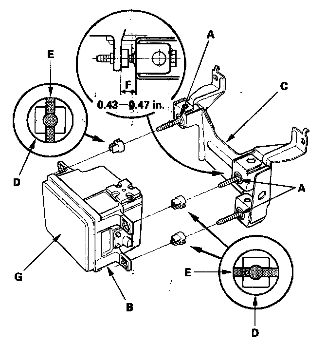 - If you disassemble the main bracket, always use new screw grommets (D).