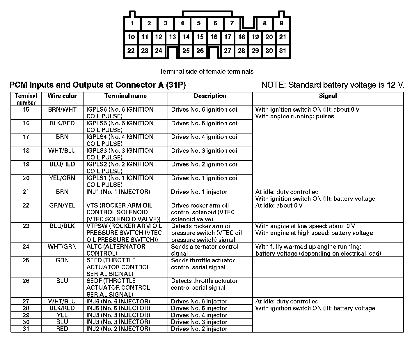 PCM Inputs And Outputs At Connector A (31P) (Part 1):