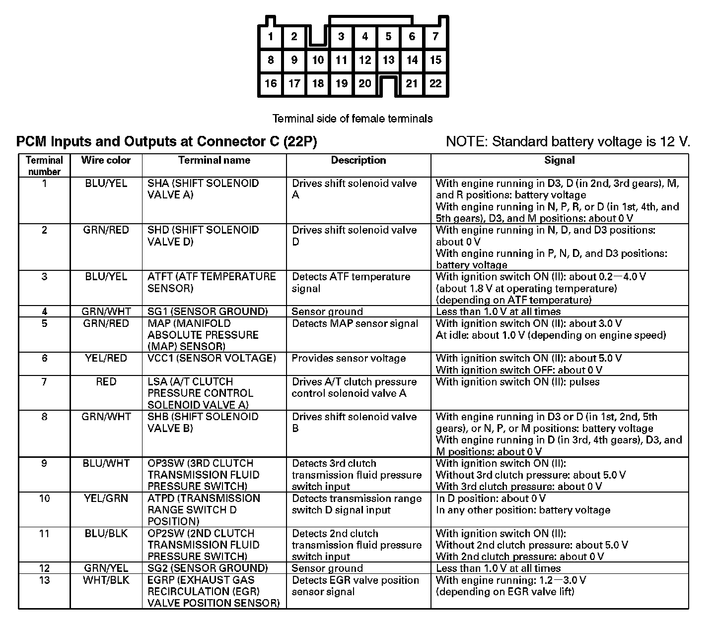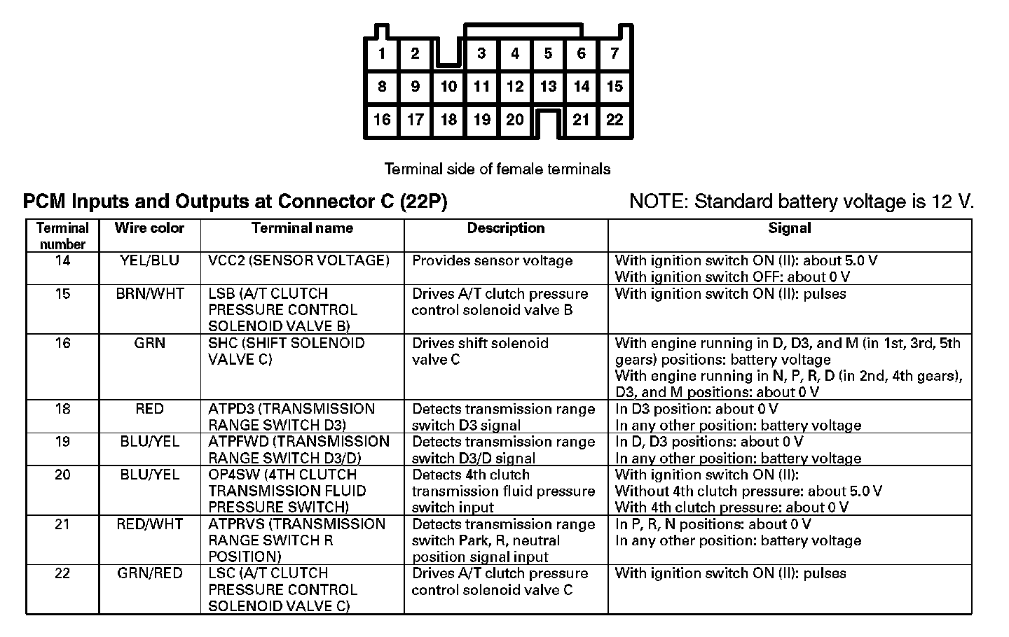 PCM Inputs And Outputs At Connector C (22P) (Part 1):