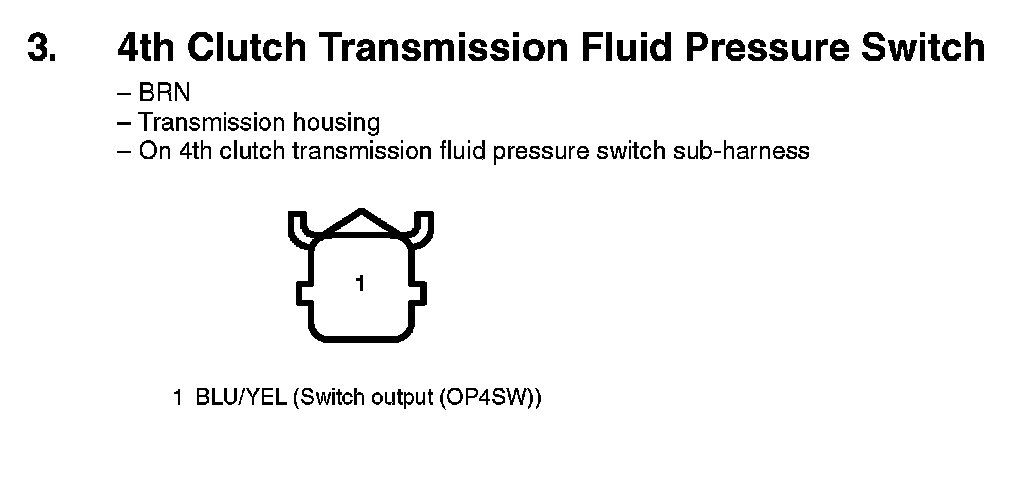 3. 4th Clutch Transmission Fluid Pressure Switch:
