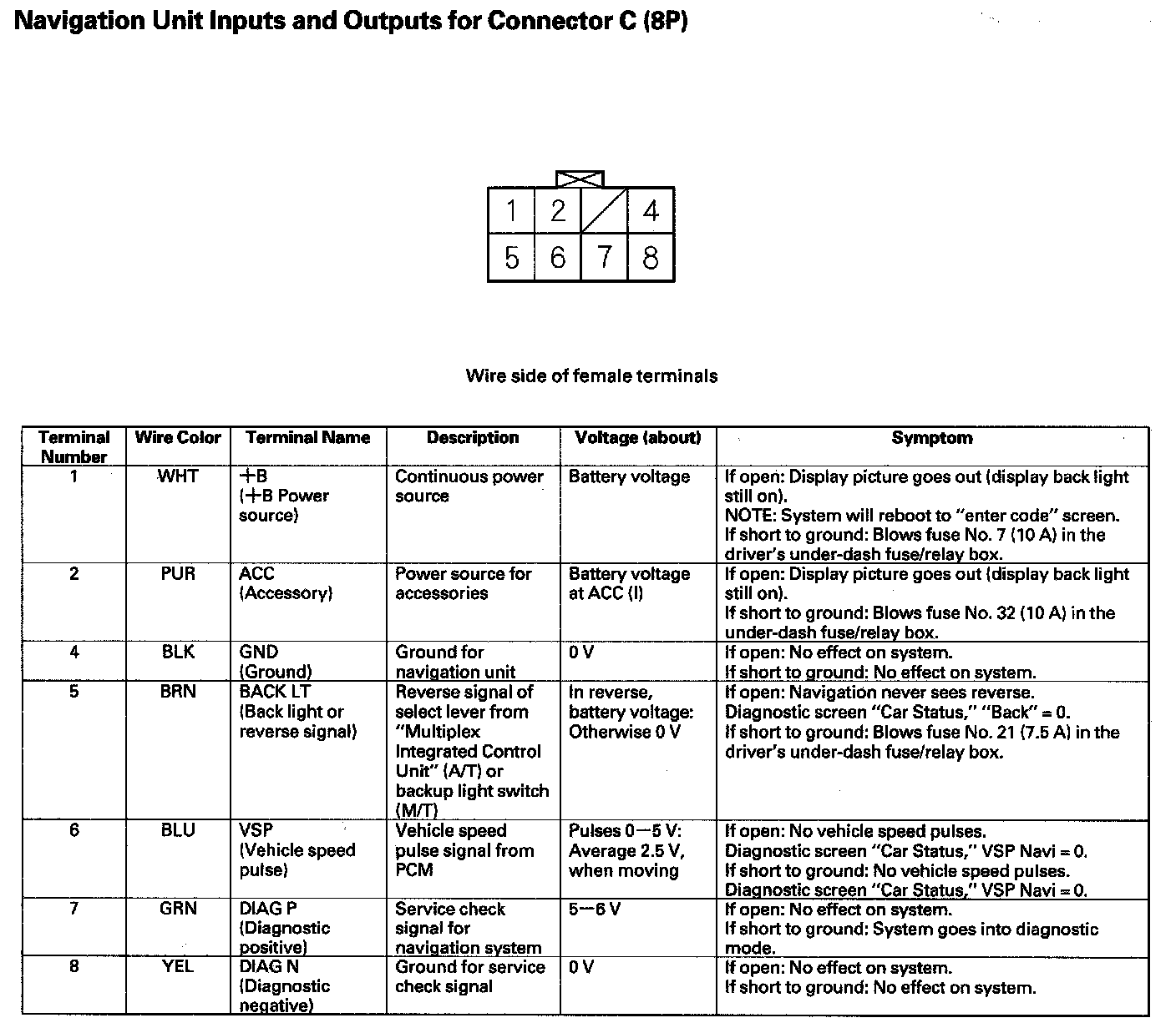 Navigation Unit Inputs And Outputs For Connector C (8P):