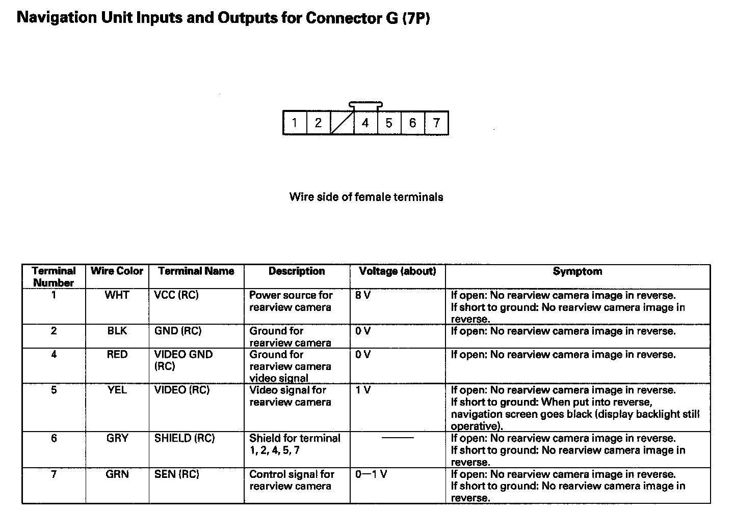 Navigation Unit Inputs And Outputs For Connector G (7P):
