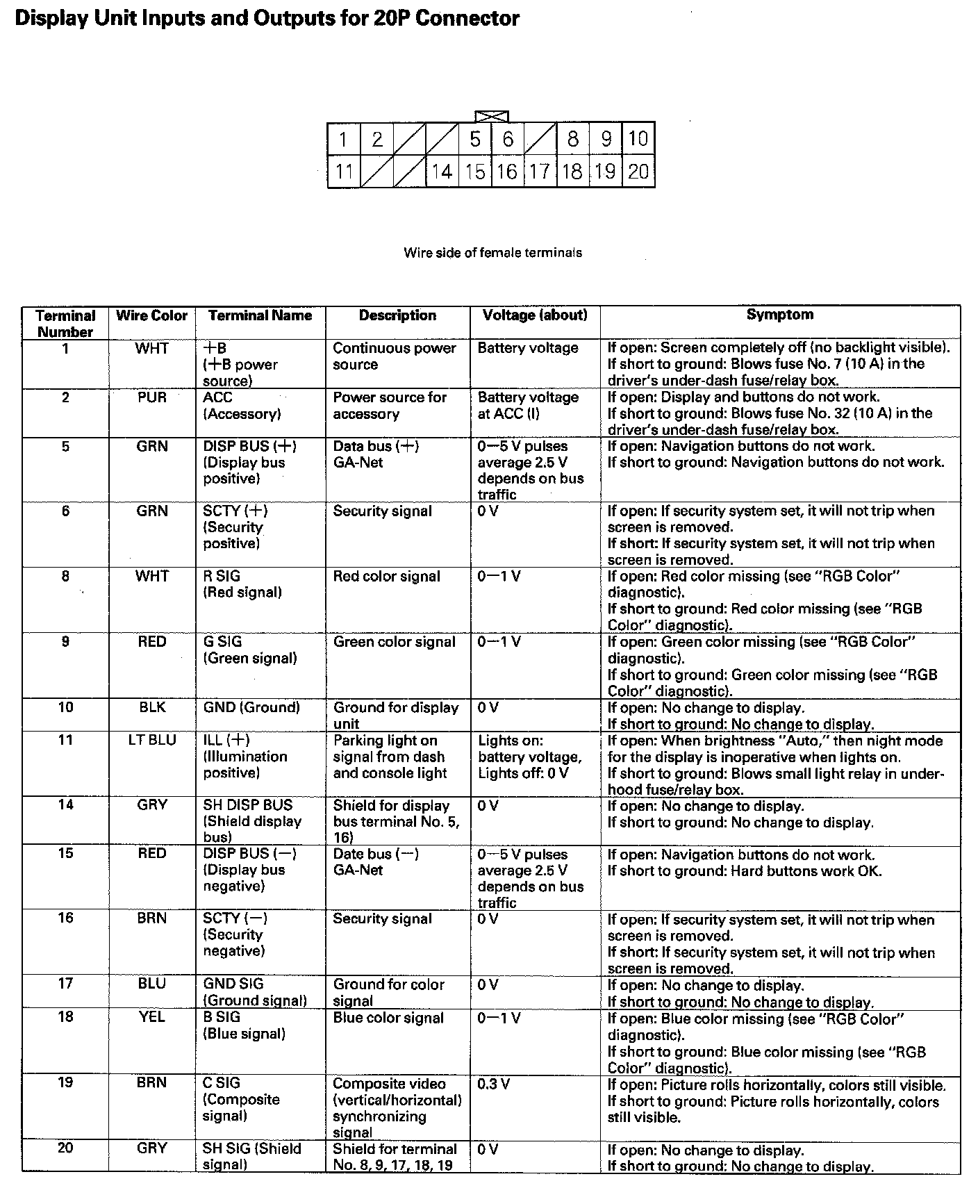 Display Unit Inputs And Outputs For 20P Connector Part 1: