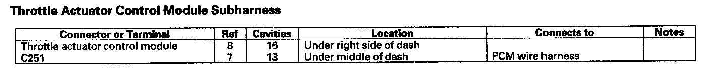 Throttle Actuator Control Module Subharness: