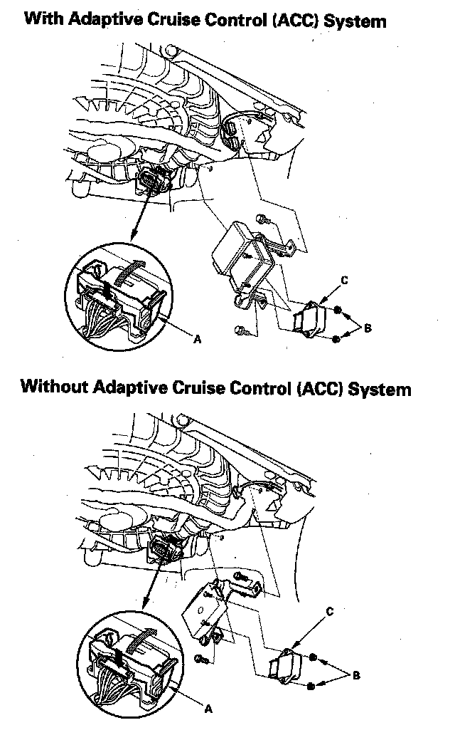 3. Remove the Hands Free Link control unit and the adaptive cruise control (ACC) unit and its bracket (if equipped).