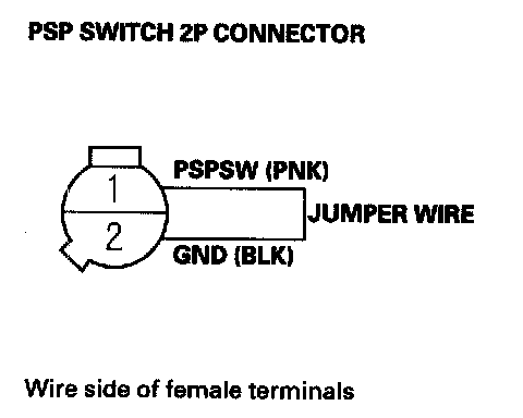 17. Remove the jumper wire from the PSP switch 2P connector.