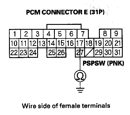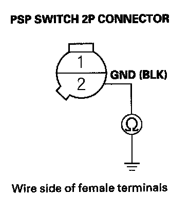 11. Check for continuity between PSP switch 2P connector terminal No. 1 and body ground.