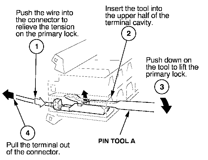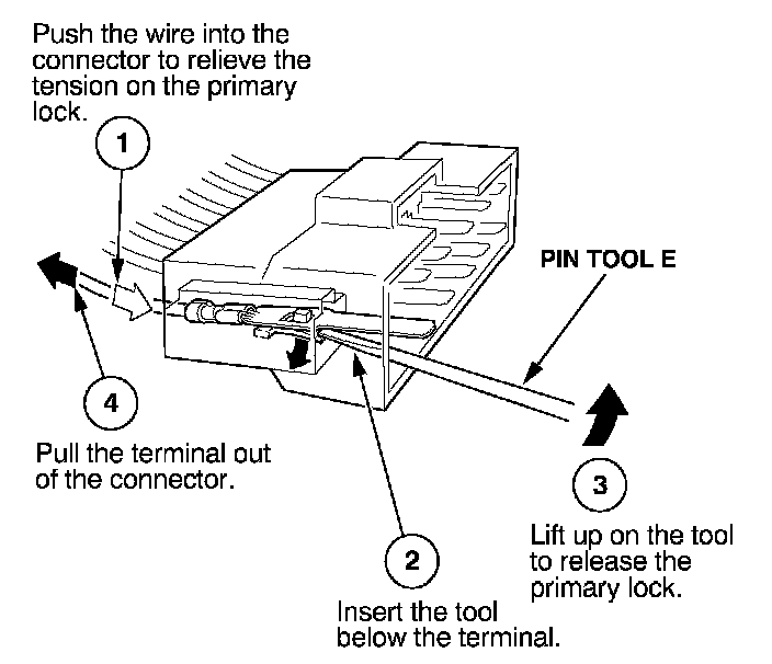 Before you begin, inspect the wire you are about to repair for damage and length. Make sure the wire will be long enough to make a terminal repair without stretching it when you reinstall the terminal in the connector. If the wire is too short, or if access to the connector is too restricted to make a terminal repair, you may need to install a pigtail terminal (a short length of wire with a factory-crimped terminal on it). Refer to HOW TO INSTALL PIGTAIL TERMINALS.