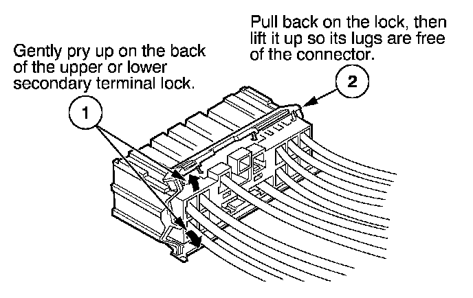 - If it has a secondary terminal lock, go to Connectors With a Secondary Lock. A secondary lock, found on most connectors on some models, is an additional locking device on the connector housing as a backup for the primary lock on the terminal.
