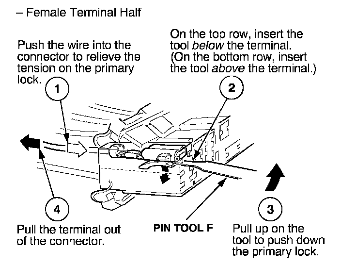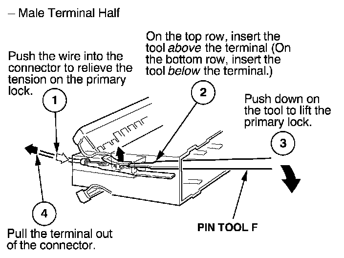 3. Remove the terminal from the male half. Male Terminal Half