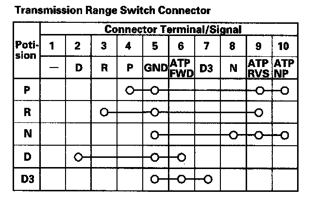 Home >> Acura >> 2007 >> RL V6-3.5L >> Repair and Diagnosis >> Powertrain Management >> Transmission Control Systems >> Testing and Inspection >> Component Tests and General Diagnostics >> Transmission Range Switch Test