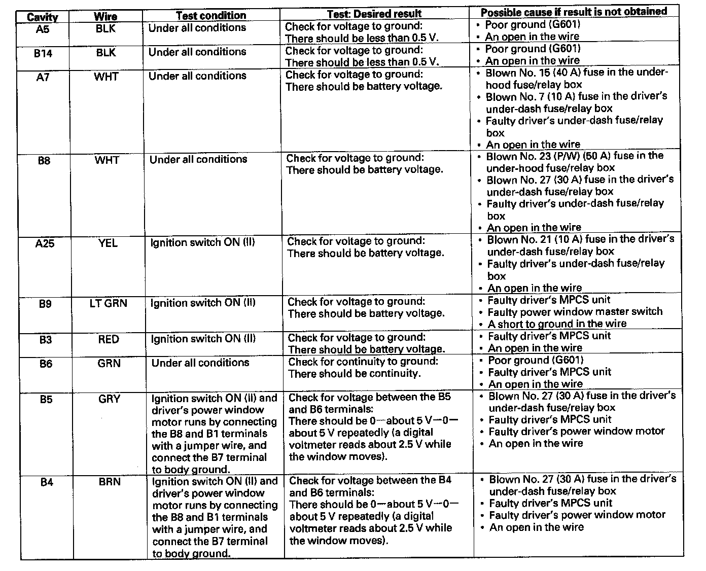 Home >> Acura >> 2007 >> RL V6-3.5L >> Repair and Diagnosis >> Relays and Modules >> Relays and Modules - Windows and Glass >> Power Window Control Module >> Testing and Inspection >> Component Tests and General Diagnostics >> Driver's MPCS Unit Input Test