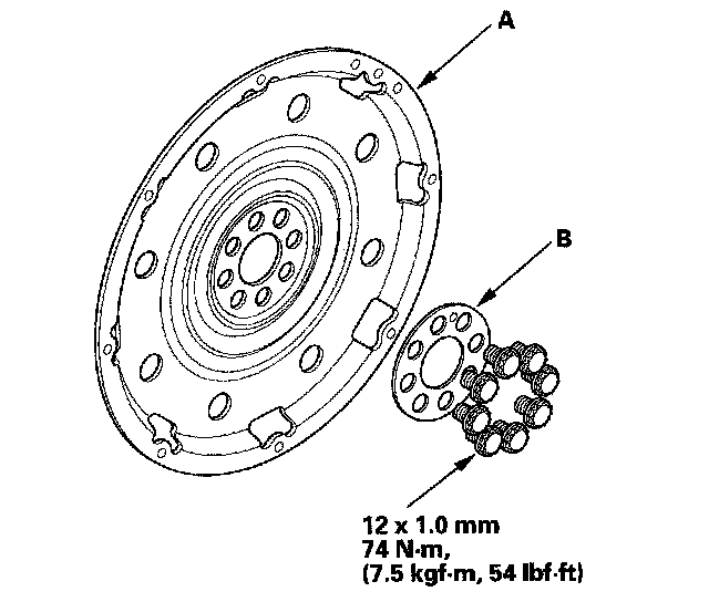 Flex PlateTighten the eight bolts in a crisscross pattern in two or more steps.
